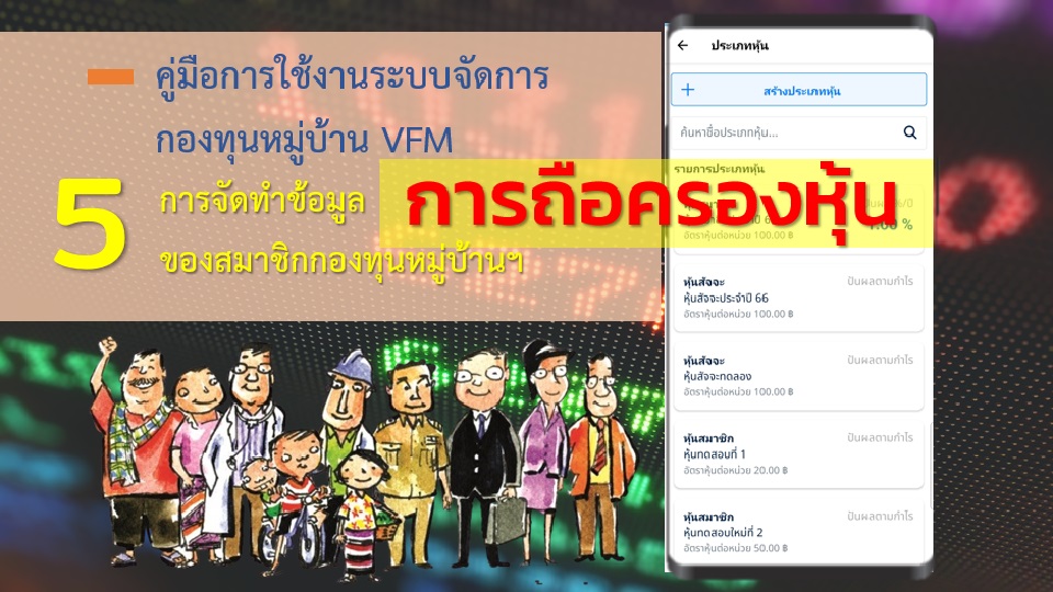 คู่มือการใช้งานระบบบริหารกองทุนหมู่บ้าน (VFM ) จัดทำข้อมูลการถือครองหุ้น